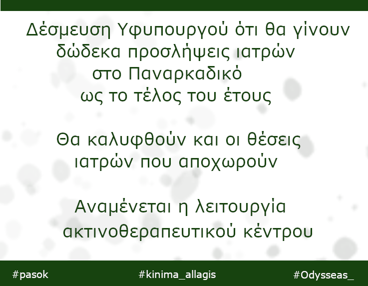 Δέσμευση Υφυπουργού στον Κωνσταντινόπουλο ότι θα γίνουν δώδεκα προσλήψεις ιατρών στο Παναρκαδικό ως το τέλος του έτους